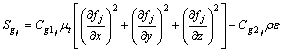 。考虑湍流对f1和f2的影响,引入f1和f2的脉动均方值g1和g2,其输运方程如下: