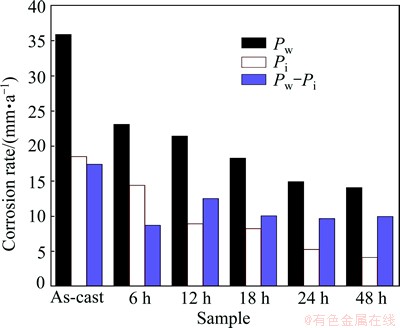Fig. 8 Pw, Pi and Pw-Pi of as-cast and solution-treated samples