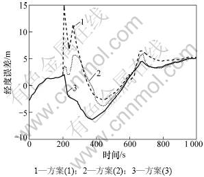 (4) 比较3个方案可知,抗差滤波的效果体现在观测发生异常的时间段,在观测正常的时刻,3种方案的滤波精度相同。