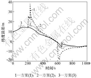 (1) 由方案(1)的曲线可知,当GPS信号正常时,能够向惯导系统提供准确的观测信息,经过Kalman滤波后得到精度较高的状态估值,但是一旦GPS观测异常,则会立即污染滤波器导致状态估计错误。