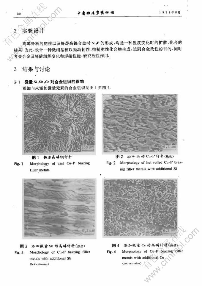 微量Si,Sb,Ce对高磷铜钎料的影响