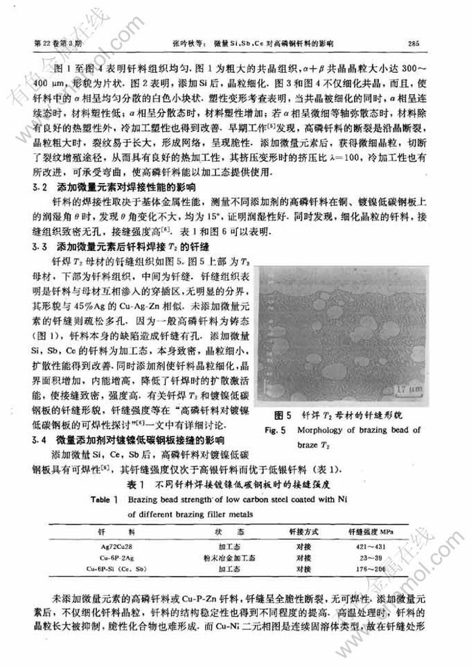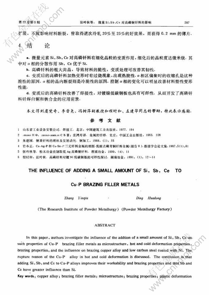 Key words:copper alloy; brazing fil1er metals; microstructure; brazing properties; plastic deformation