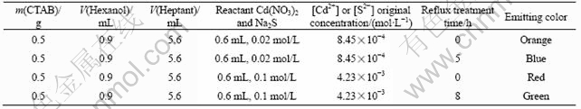 Table 1 Reaction conditions for preparing different emitting colored CdS nanocrystals
