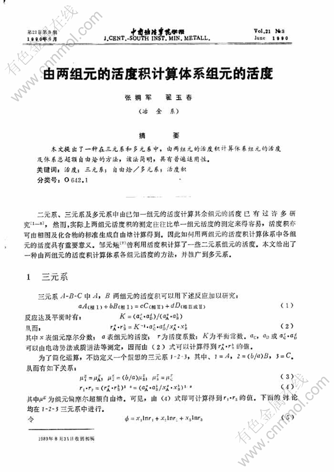 关键词:活度; 三元系; 自由焓/多元系; 活度积