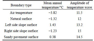 The effect of climate warming on the thermal regime was taken into account in the simulations. The air temperature is assumed to warm by 2.6 °C over the next 50 years on the Qinghai-Tibet Plateau [35]. The boundary conditions are determined according to the theory of adherent layer [36] and related literature [33, 37] as shown in Eq. (3) and Table 2. The various boundary temperatures can be expressed as the following general form: