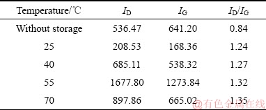 表1 CFx阴极在不同温度下储存15天后Raman谱的ID/IG值