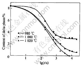 Fig.2 Dissolution kinetics of δ phase in Inconel 718 alloy