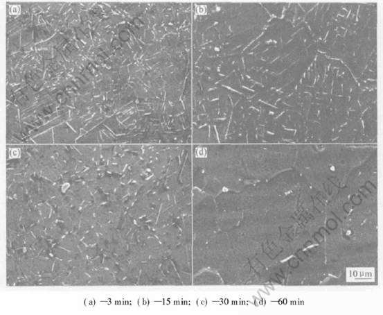 Fig.3 Microstructures of Inconel 718 alloys during dissolution treatment at 1000℃ after different holding times