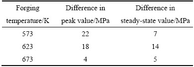 表1 不同锻压工艺下峰值应力值和稳态应力值之间的差距