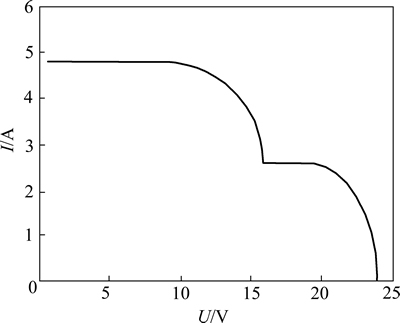 曲线也发生了改变[12-13]。遮阴情况下的电流曲线和功率曲线分别见图5和图6。