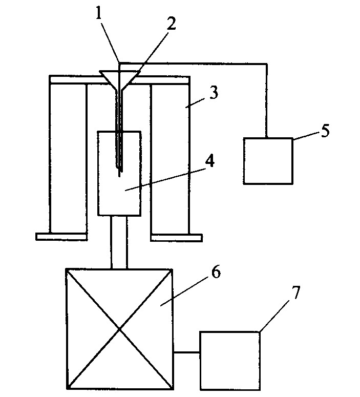 图1 垂直离心铸造装置 Fig.1 Schematic diagram of vertical centrifugal casting apparatus 1—Thermocouple; 2—Pouring cup;3—Heating furnace; 4—Metal mould; 5—Temperature controller; 6—Motor; 7—Inverter