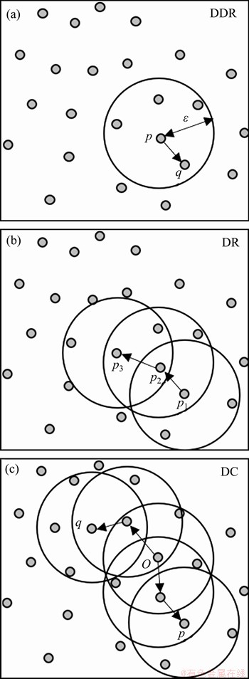 Directly density-reachable (DDR): In point set D, if point q is the ε nearest neighbor of point p, and point p is the core point, then the point q is the DDR of point p based on MinPts.