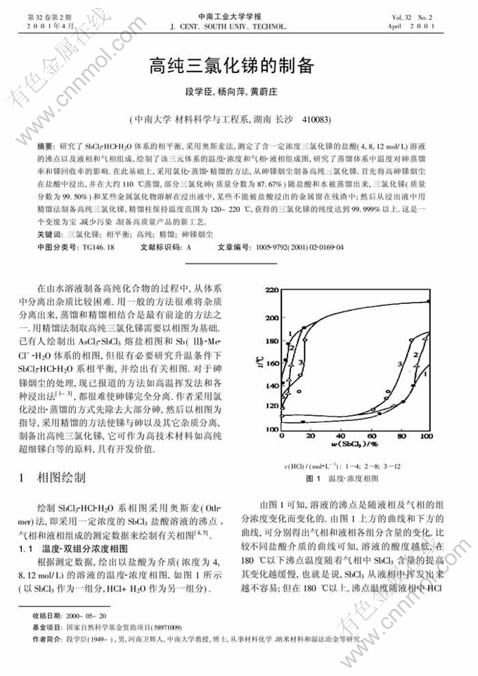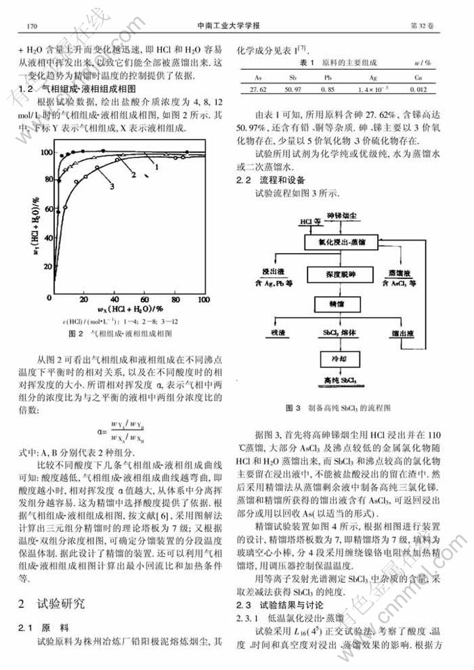 关键词:三氯化锑;相平衡;高纯;精馏;砷锑烟尘