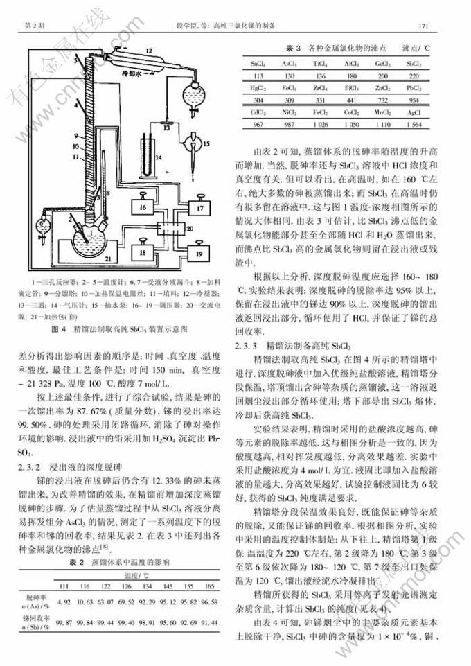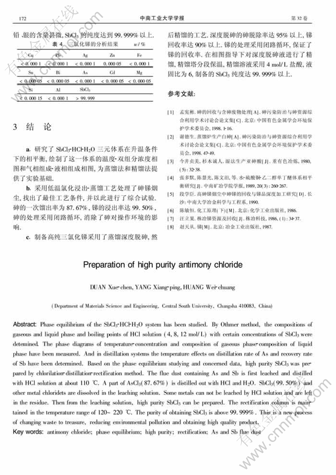 Key words:antimony chloride; phase equilibrium; high purity; rectification; As and Sb flue dust