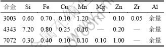 以3003合金为芯材,一面包覆4343合金作为皮材,高温钎焊时熔化成为钎料,另一面包覆7072合金作为皮材,起到牺牲阳极、保护芯材免受腐蚀的作 用[3]。3层材料形成三明治结构,皮材厚度一般占复合铝箔厚度的10%左右。