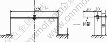 设计图1所示的实验装置来检测、分析成品铝箔的抗下垂性能。铝箔的外悬长度为50 mm,箔带宽度为22 mm。将加热炉升温到610 ℃,并稳定20 min,再将装配好的试样送入炉内进行加热,加热时间为5 min。然后,将试验装置平稳地移出炉外空冷,用游标卡尺测量试样的自由端自然下垂量即下垂值[12]。