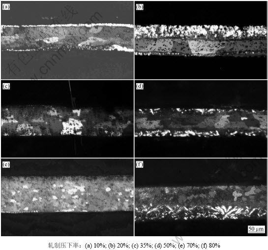 Fig.4 Microstructures of post-brazing alloys after annealing at 370 ℃ through different reductions