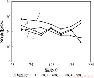 2.2.2 负载后焙烧温度对催化剂活性的影响