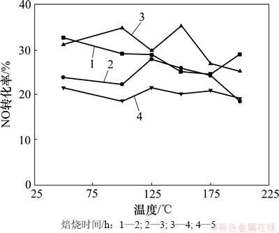 图5 SiO2负载锰物质后焙烧时间对SiO2/MnOx催化剂活性的影响