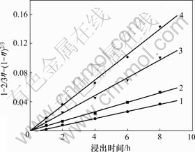 该方程表示浸出率与浸出时间的关系,又称收缩核模型[9]。将试验结果按