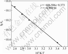 根据不同温度时的lg ke对1/T作图,得到Arrhenius线形图,如图3所示。