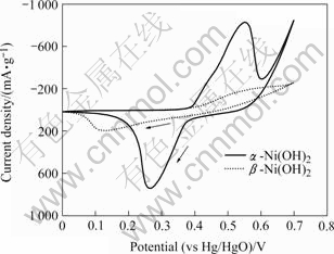 Fig.5 Charge/discharge curves for Al-substituted α-Ni(OH)2 and β-Ni(OH)2 electrode