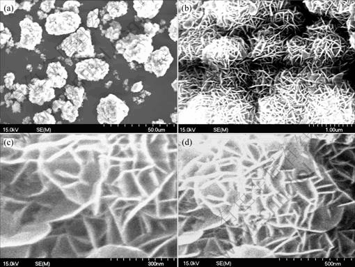Fig.9 SEM images for α-Ni(OH)2 sample synthesized under optimum conditions