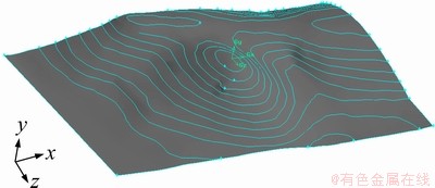 根据实测资料,选取山顶为原点以主风向为x轴正方向建立直角坐标系,将实际地形高程数据导入Gambit2.4.6生成风电场局部三维地形曲面,如图5所示,其水平投影范围为1 000 m×700 m。