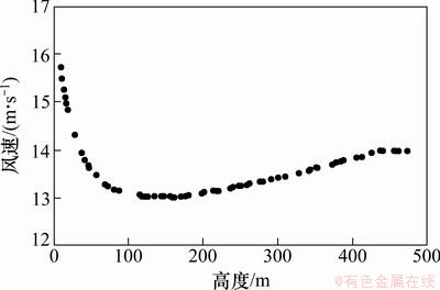 Fig. 8 Scatter plot of wind speed along height above the mountain top