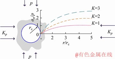 Figure 1 Distribution of radial stress around circular opening
