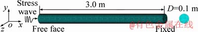 The problem of the stress wave propagation in initial gradient stress field, which involves two types of loading including initial gradient stress and dynamic stress wave, is a coupled static-dynamic loading problem. This problem can be solved following two steps for numerical calculation. The initial gradient stress state of the modelling is calculated in the first step, and then the dynamic loading process is computed on the basis of the static calculation data set. To this end, numerical code LS-DYNA has a good solution procedure, i.e. implicit to explicit solution method. An implicit module is called to calculate the initial gradient stress state, and the data of the element displacement and stress are output into a database file. Then the explicit module is used for further calculation of the mechanical responses with dynamic stress wave. In the explicit calculation stage, the database file containing the results of displacement and stress is imported into the model to update the geometry and the stress history of the elements so as to match the implicit solution results [26, 27].
