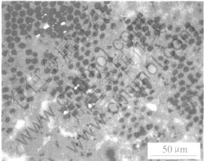 Fig.4 Polarized optical morphology of C/C-SiC composite fabricated by infiltrating Si into CVI2 preform