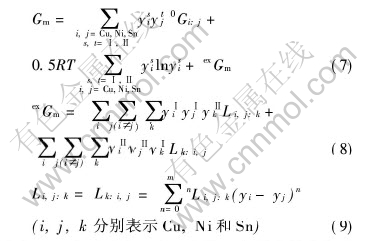 Gm=0GCux(cu)+0GNix(Ni)+0GSnx(Sn)+RT(x(Cu)lnx(Cu)+x(Ni)lnx(Ni)+