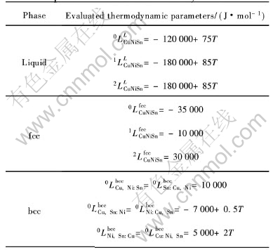 Table 1 Evaluated thermodynamic parameters in Cu-Ni-Sn System