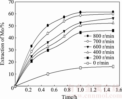 Figure 3 also shows that the treatment without agitation (0 r/min) recovered 16.2% molybdenum in 90 min.
