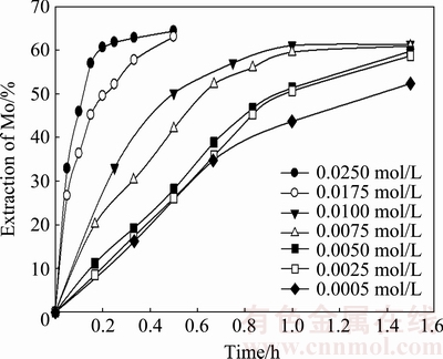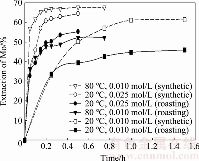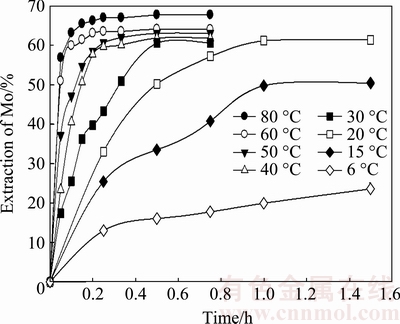 Fig. 4 Extraction of molybdenum at different temperatures as function of time