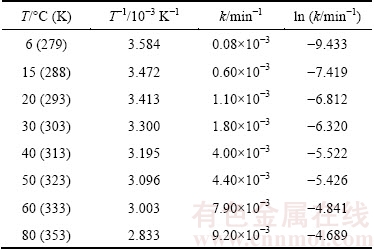 Table 2 Velocity constants for dissolution of molybdite in temperature range of 6-80 °C