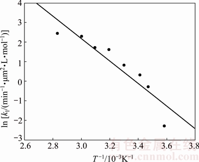Fig. 16 Arrhenius graph for dissolution of molybdite in KOH-H2O media
