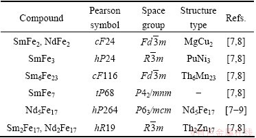 Table 1 Crystallographic data of compounds in Sm-Fe and Nd-Fe binary systems