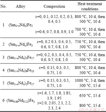 Table 2 Composition and heat treatment conditions of alloys in Sm-Nd-Fe system