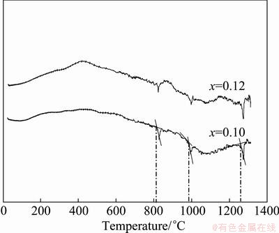 Fig. 6 DTA heating curves for (Sm1-xNdx)Fe2 samples