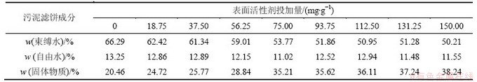 2.1 表面活性剂调理后污泥滤饼含水率及水分组成变化
