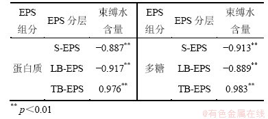 表3 污泥各层组EPS中蛋白质、多糖与束缚水的Pearson相关系数(n=9)