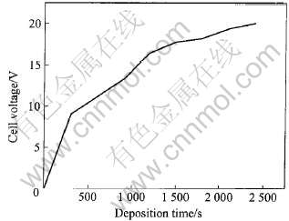 Fig.4 Chang curve cell voltage with deposition time during electro-deposition of bioactive coating