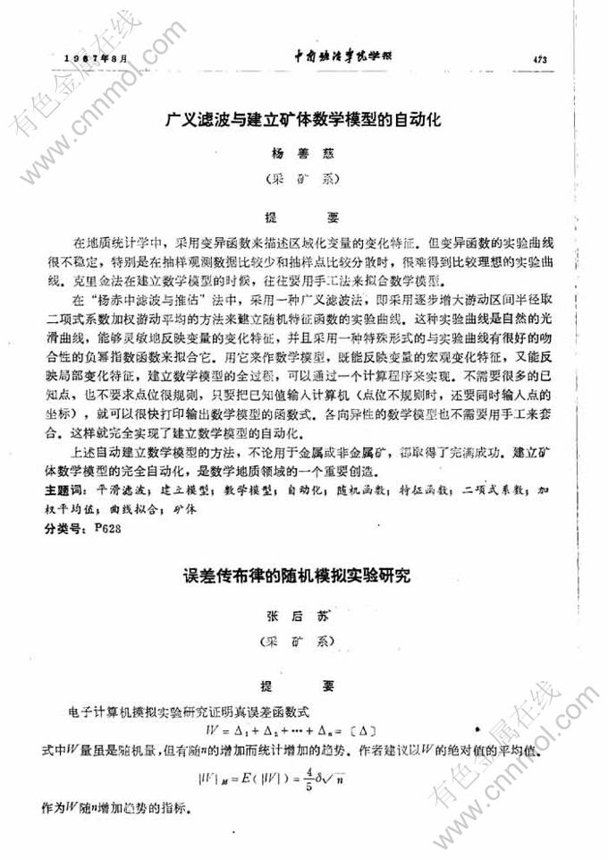 关键词:计算机模拟; 模拟实验; 统计实验法; 随机误差; 误差函数; 误差估计; 误差传布律