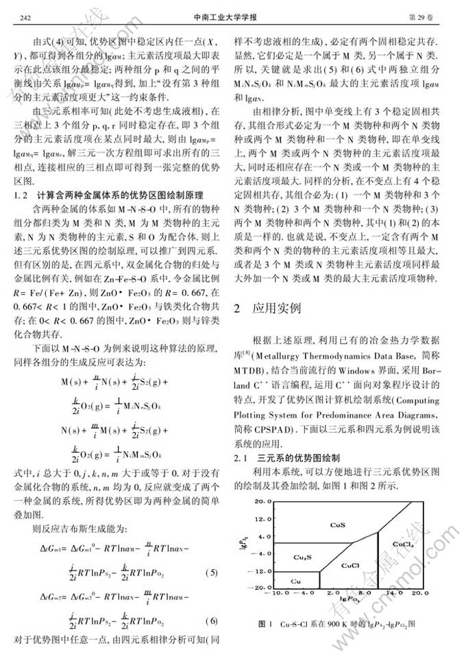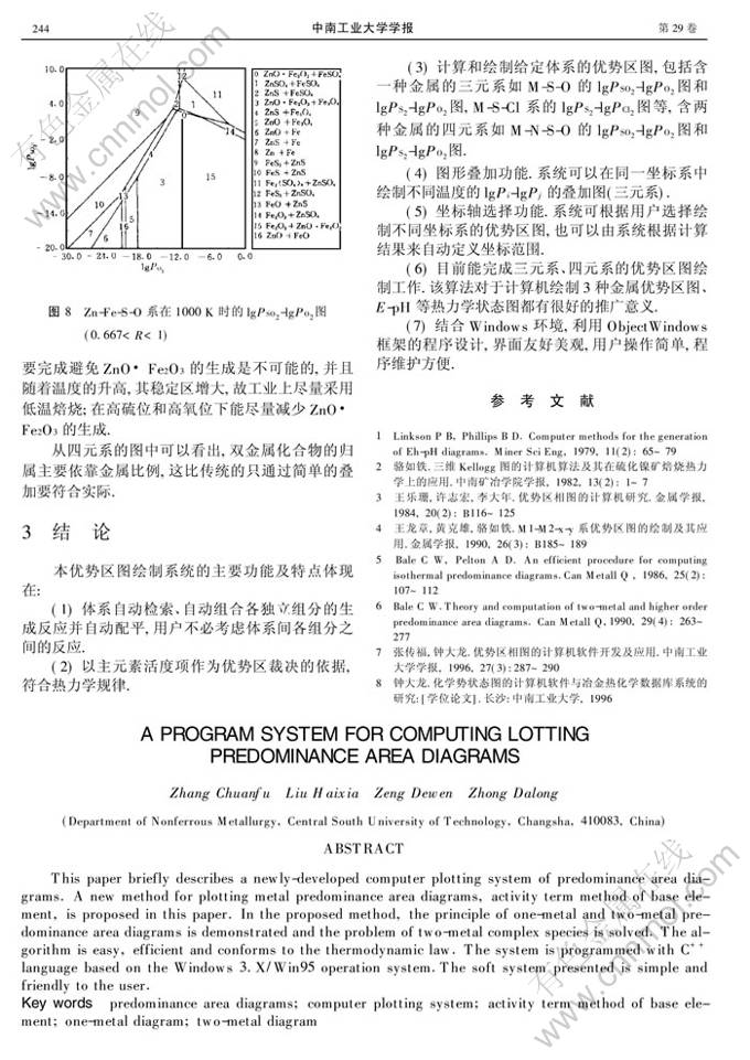 Key words:predominance area diagrams; computer plotting system; activity term method of base element; one-metal diagram; two-metal diagram