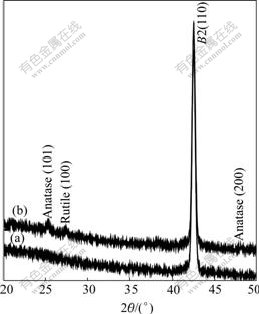 Fig.2 XRD patterns of surfaces of chemically-polished NiTi SMA (a) and NiTi SMA after Fenton’s oxidation treatment (b)
