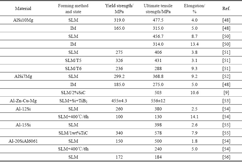 Table 1 Mechanical properties of aluminum alloys and composites prepared by selective laser melting