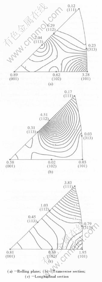 Fig.3 Inverse pole figures of different planes of alloy sheet