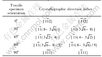 Table 3 Crystallographic directional indices of various tensile specimen orientations